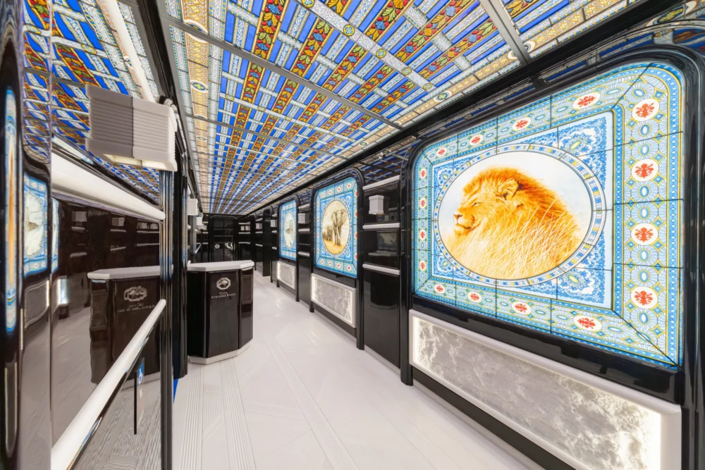 Similarly, the intricate glass elements featured in the spectacular ceiling and wall paneling were developed by Mellini Mosaici. This established firm is celebrated for its deep expertise, particularly in the restoration of artistic stained-glass windows in Europe’s most revered cathedrals and institutional buildings. By integrating the work of such masters, Stefano Ricci transforms the Singapore lounge into a veritable gallery of Florentine decorative arts.