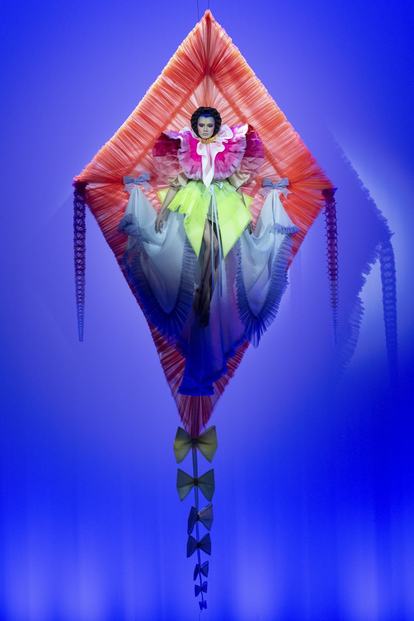 A kite, after all, requires tension and wind; it is inherently fragile yet possesses the strength to defy gravity. This duality became the backbone of the collection. It was a metaphor for controlled chaos, symbolizing the delicate balance required to maintain hope and creativity in turbulent times. The designers, famously preferring the meticulous craft of their atelier to the spotlight—as Snoeren admitted, “We don’t like to be on stage, but there’s nothing like building something”—used the collection itself as their eloquent, soaring statement.